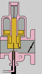 Der Kolben gleitet, je nach vom Motor erzeugten Unterdruck weiter nach oben, bzw. senkt sich. Die Nadel wird dabei aus der Öffnung, der sog. Düse, gezogen. Da diese Nadel nach unten hinn schmaler ist, tritt je nach Stellung des Kolbens mehr oder weniger Sprit aus der Düse, das Gemisch wird fetter/magerer.